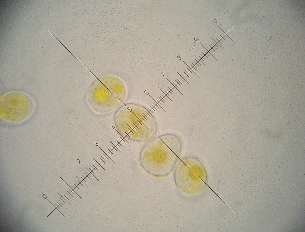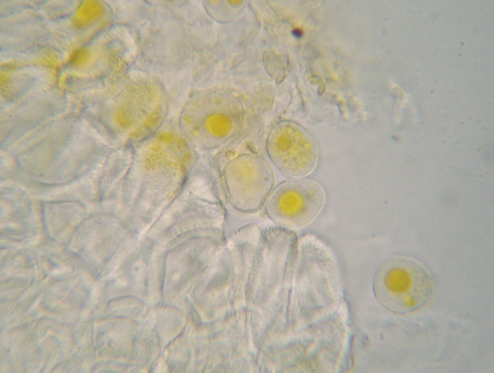 Aeziosporen stumpf polyedrisch oder ellipsoid, dünnwandig, feinwarzig, 16-22 x 15-17 µm