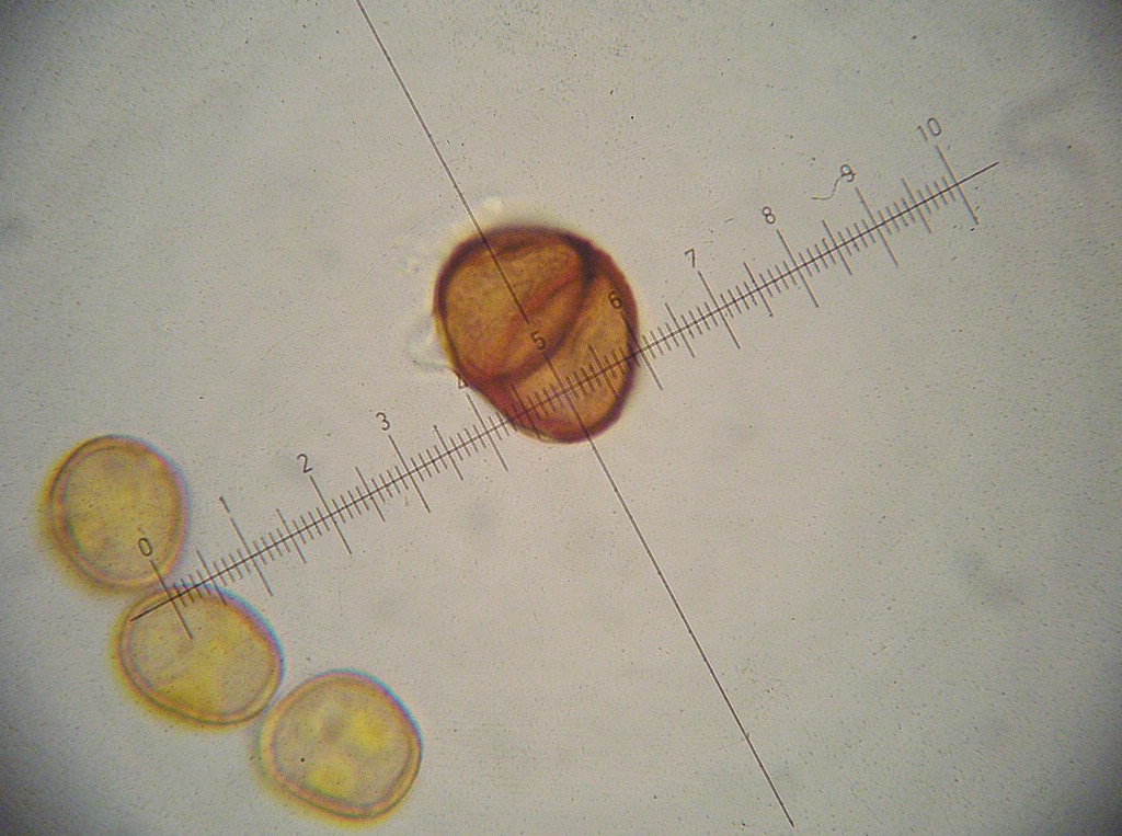 Uredosporen kugelig, ellipsoid oder eiförmig, 2-3 Keimporen (durch aufquellen der Wände zu erkennen), entfernt stachelig