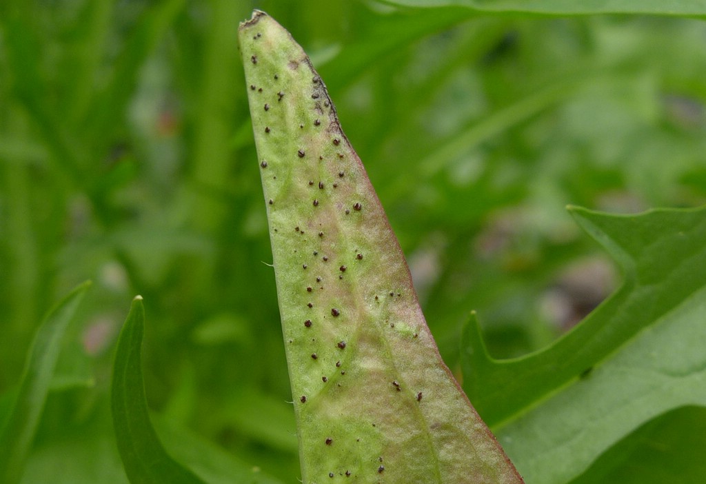 Puccinia crepidis s.str_Crepis capillaris_JKruse (3)Telien auf der Blattunterseite, ebenfalls recht klein, früh stäubend, schwarzbraun