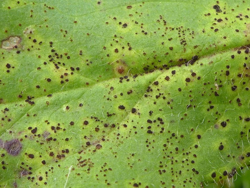 Uredien und Telien beiderseits der Blätter, zerstreut, klein und früh nackt (=stäubend)