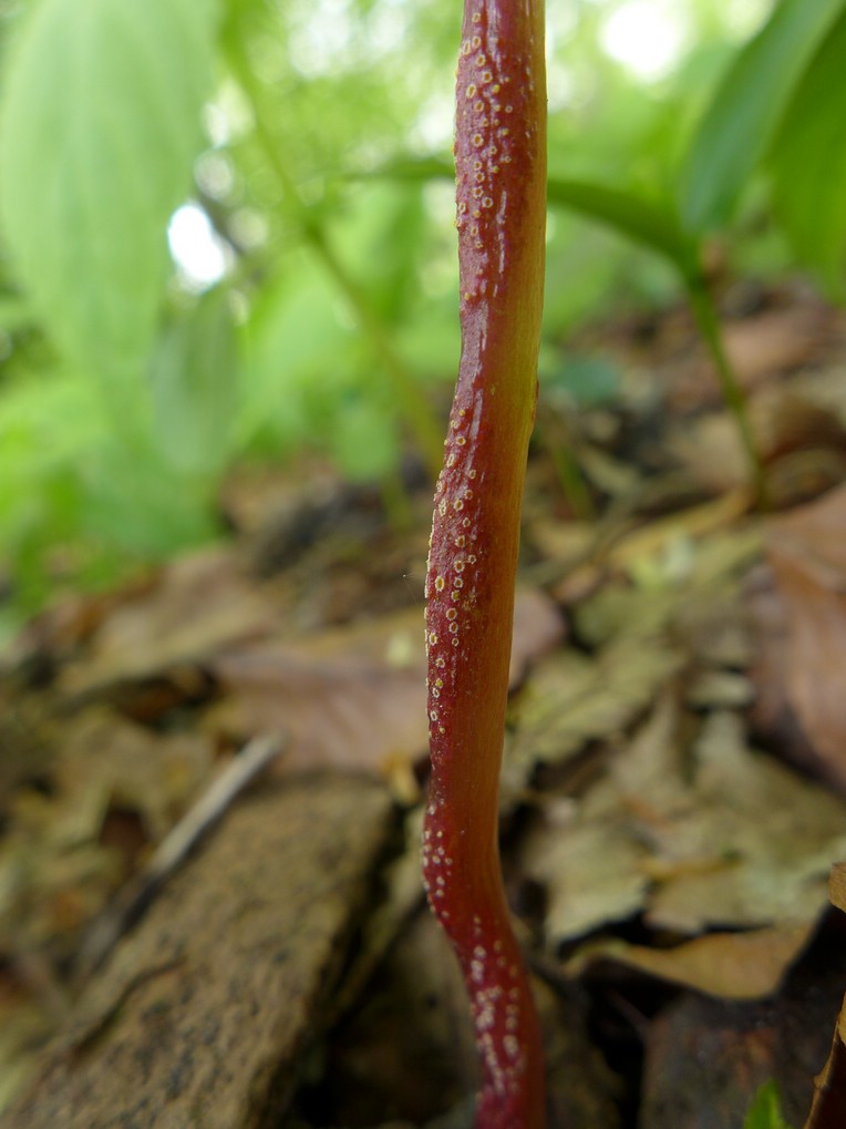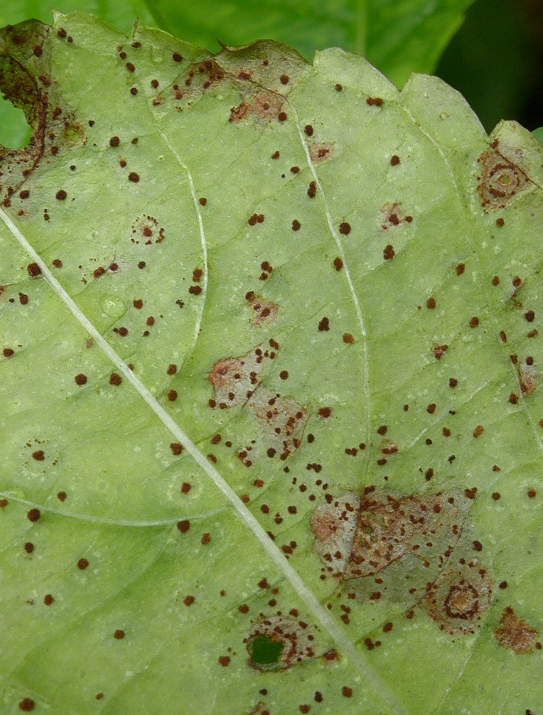 Uredien zerstreut, zimtbraun, oftmals ringförmig um ein größeres Lager angeordnet, früh nackt (=stäubend) und von einem weißen Hof umgeben