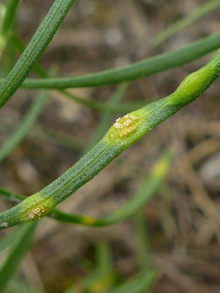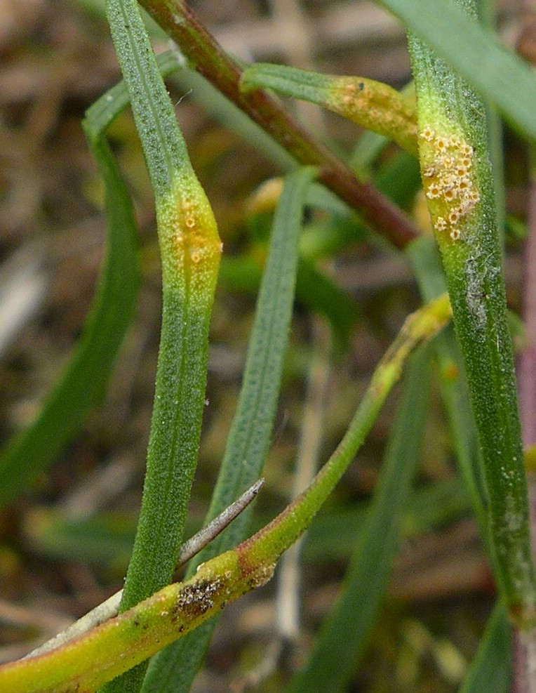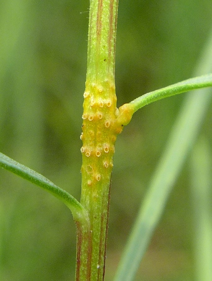 Aecien werden auch am Stängel gebildet, dort sind die Gruppen meist etwas länglich ausgebildet