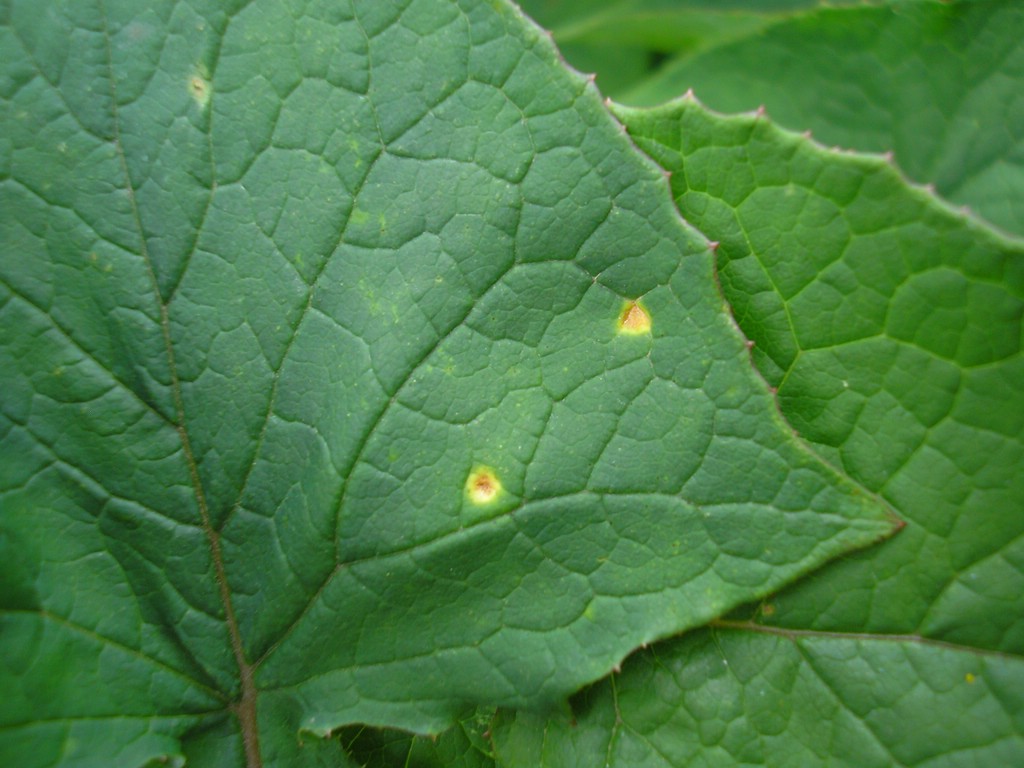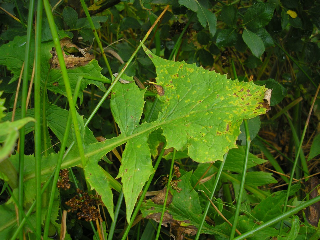 Bemerkung: Dieser Rostpilz vollführt keinen Wirtswechsel. Er bildet alle seine Stadien, Spermogonien (0), Aezien (I), Uredinien (II) und Telien (III) auf Lattich (Lactuca, Subgen. Cicerbita) aus.