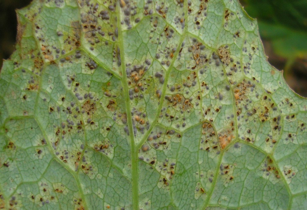 OLYMPUS DIGITAL CAMERAUredinie und Telien auf der Unterseite von gelben Blattflecken