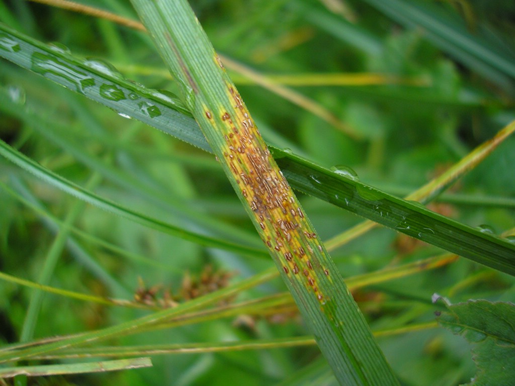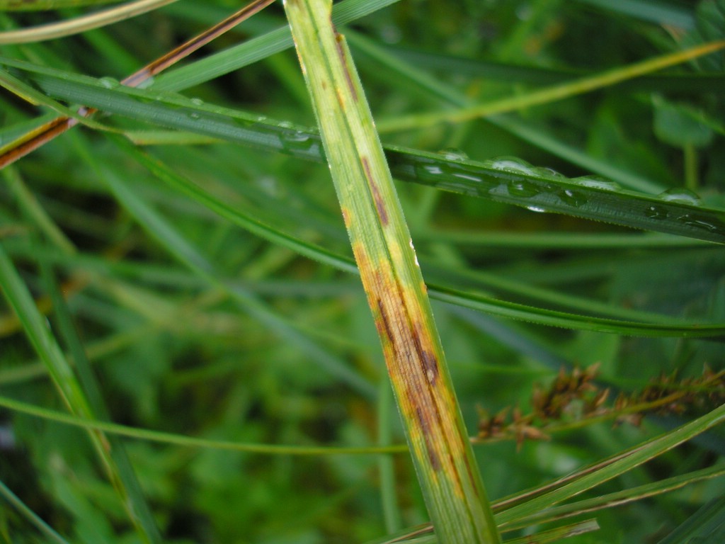 Lager unterseits von strichförmigen, gelben, orangen oder braunen Blattflecken