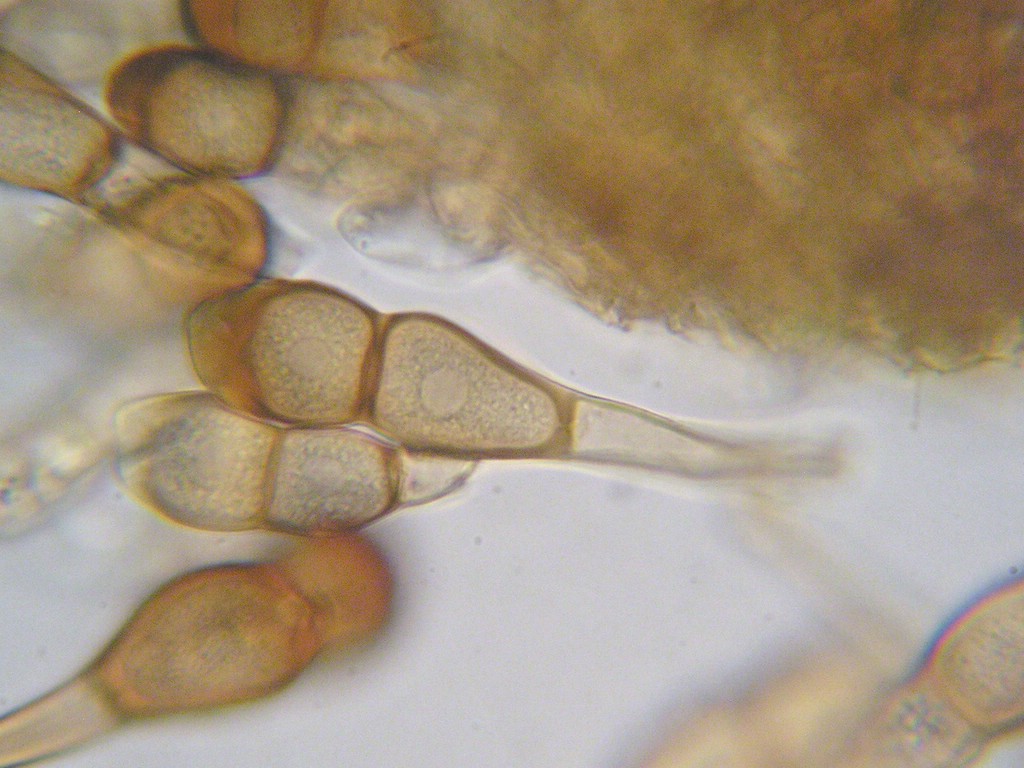 Teliosporen zweizellig, am Scheitel bis auf 8 µm verdickt