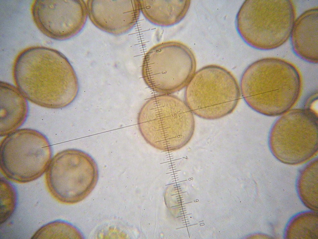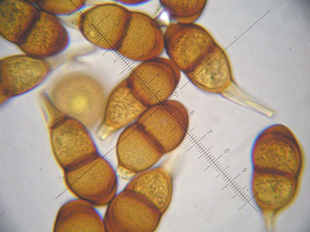 Stiel bis 60 µm lang, fest, schwach gelblich; Sporen 33-36 x 16-18 µm