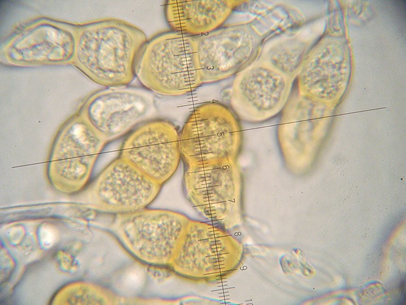 Teliosporen zweizellig, ellipsoid bis keulenförmig, Basis in den Stiel verschmälert
