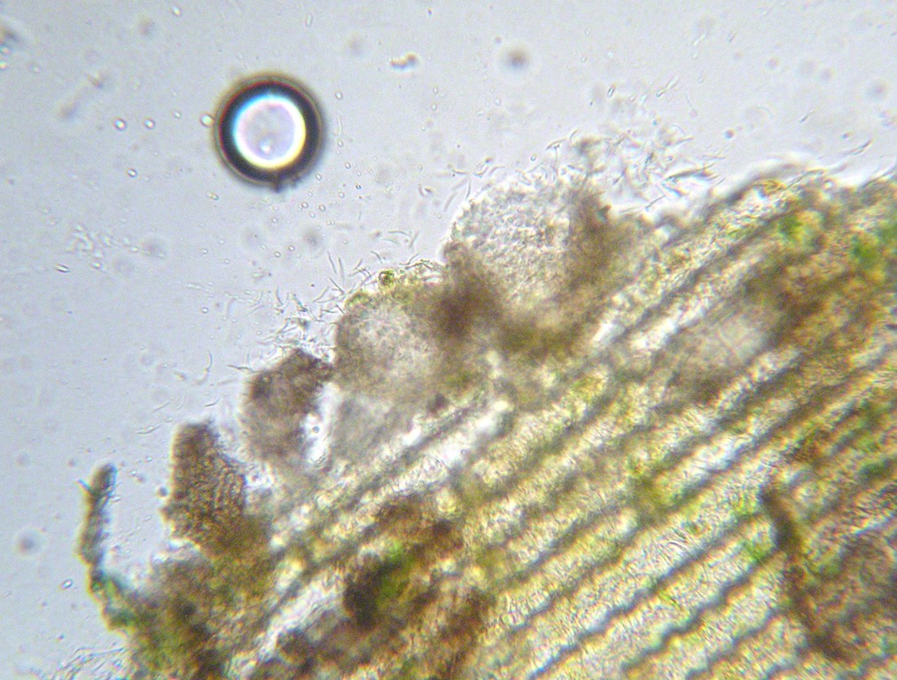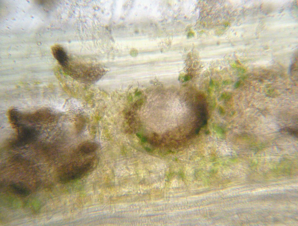 Zerdrücktes Pyknidium mit austretenden Mikrokonidien