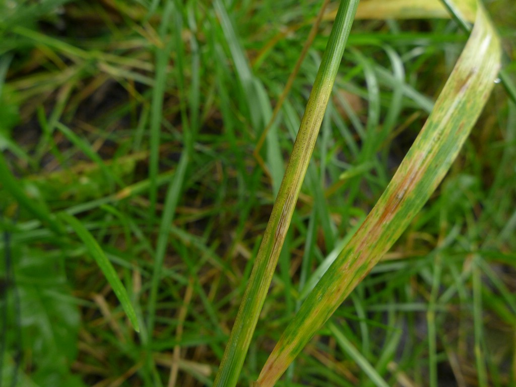 Blattflecken eckig, bräunlich oder gelblich zusammenfließend, am Stängel