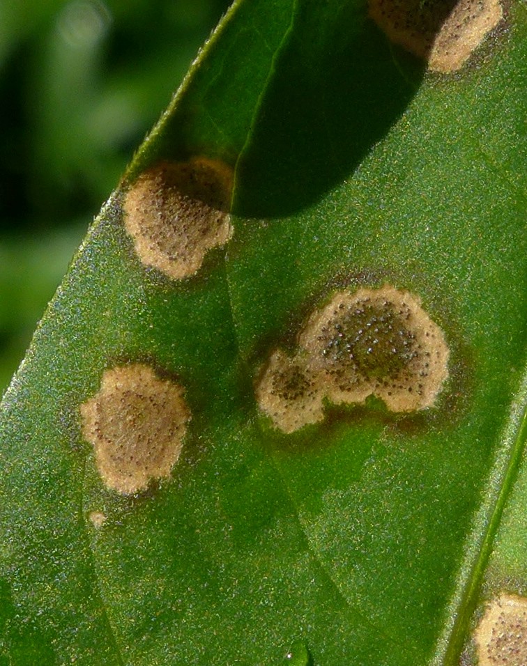 Blattflecken rundlich oder unregelmäßig, braun oder lederfarben