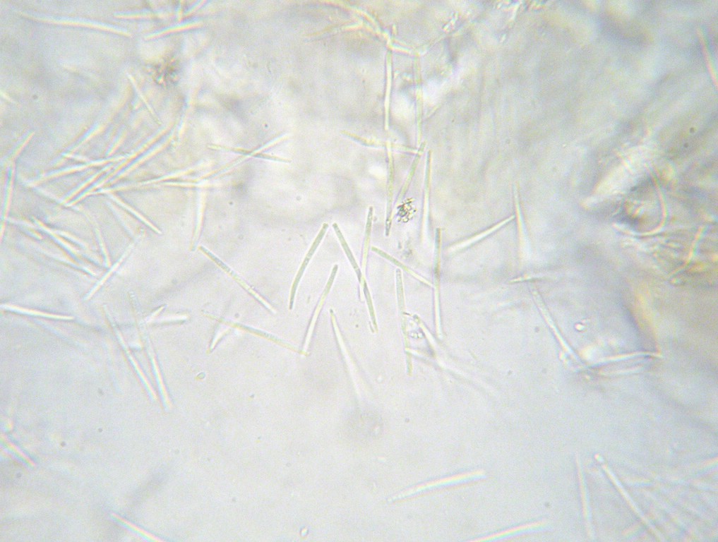 Zerdrücktes Pyknidium mit austretenden Konidien