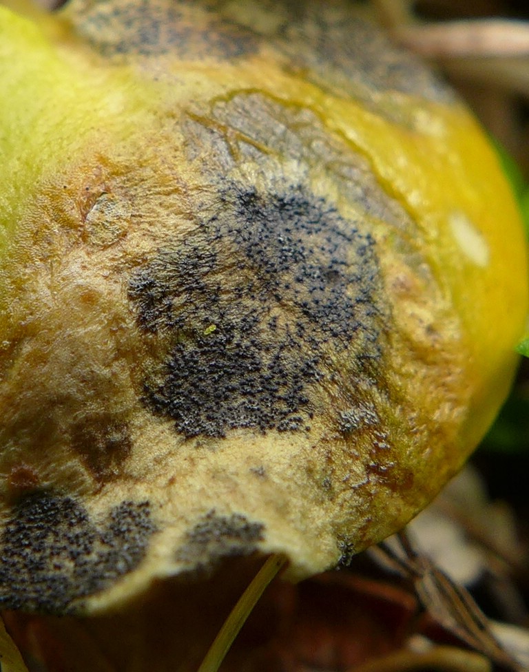 Pyknidien als kleine schwarzbraune Punkte beiderseits in den Flecken