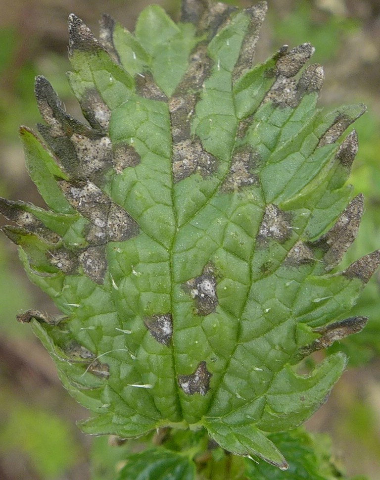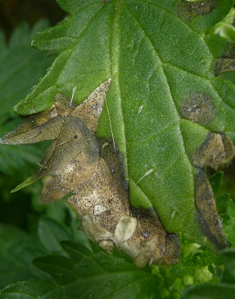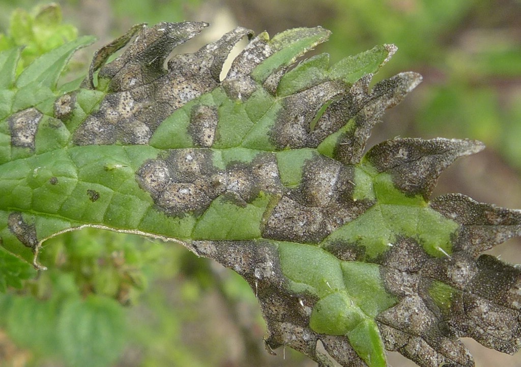 Pyknidien als kleine schwarzbraune Punkte beiderseits in den Flecken