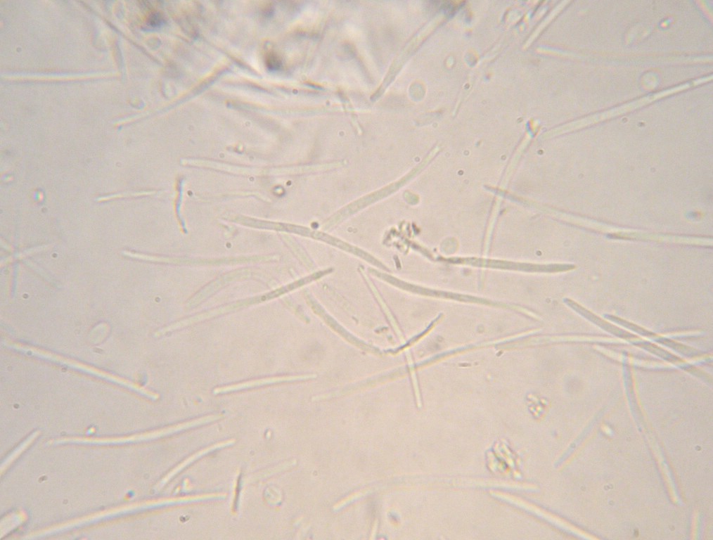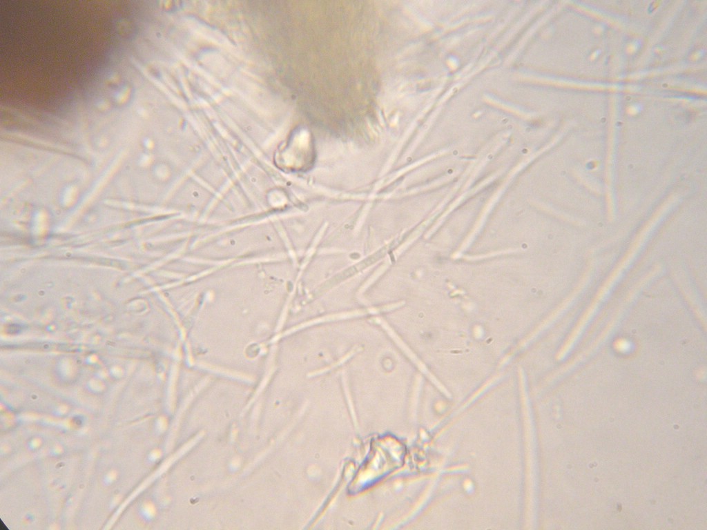 Zerdrücktes Pyknidium mit austretenden Konidien