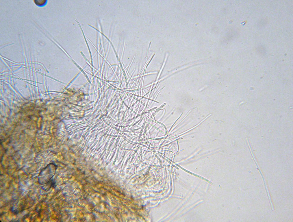 Zerdrücktes Pyknidium mit austretenden Konidien