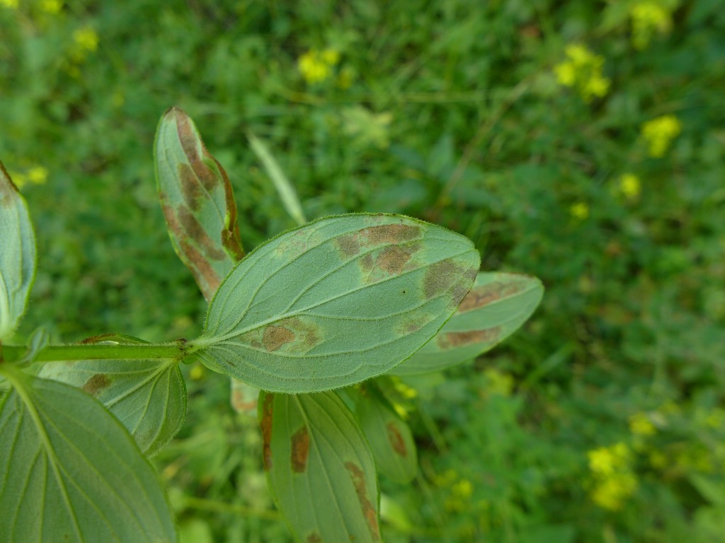 Verwechslungsarten: Mit sichelförmigen Konidien gibt es noch Gloeosporidiella hyperici und mit eiförmigen kleineren Konidien Phyllosticta hypericicola auf der Wirtsgattung.