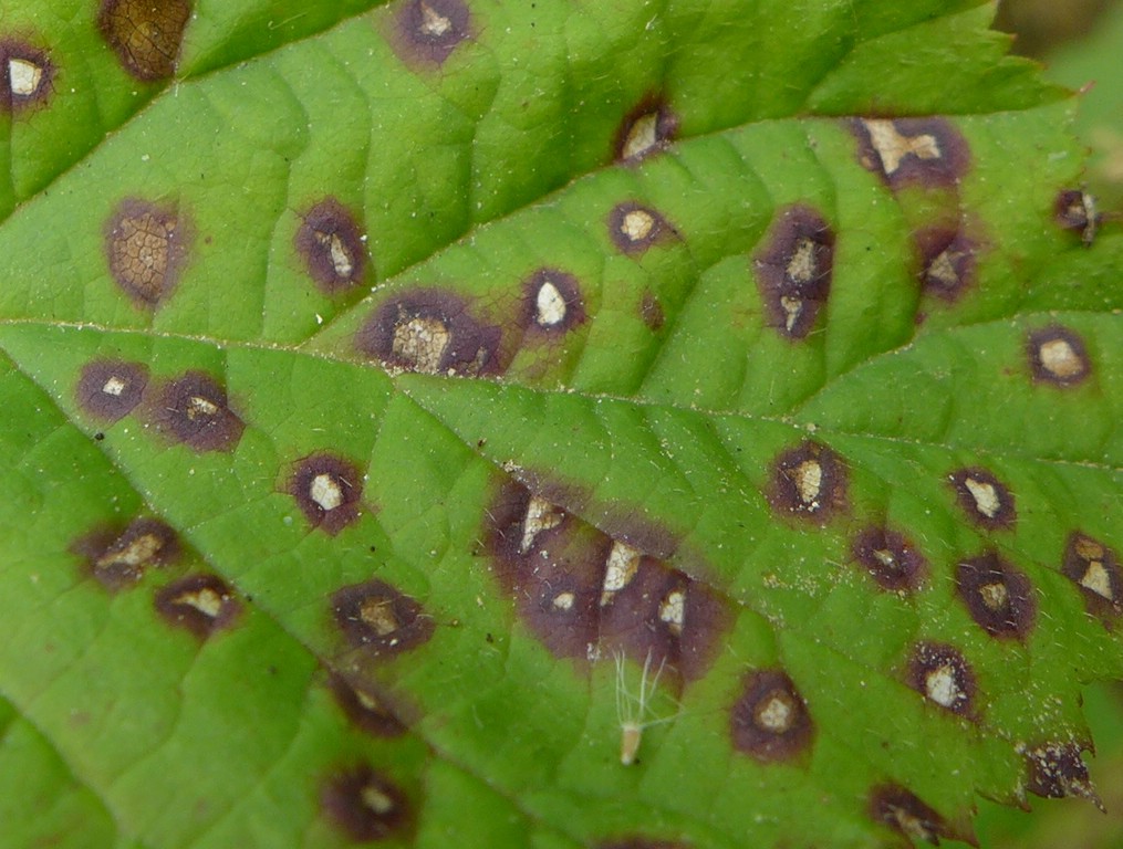 Bemerkung: Blattflecken sieht man sehr oft auf Rubus, auch im Winter. Zu dem Zeitpunkt sind die Lager aber in der Regel leer, die Konidien bereits ausgefallen.