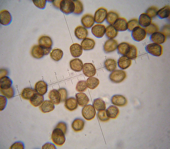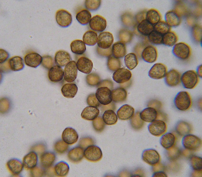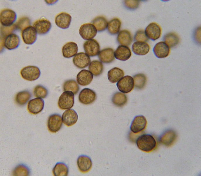 Einzelsporen von unterschiedlicher Gestalt, 9 – 13 x 10 – 13,5 µm groß