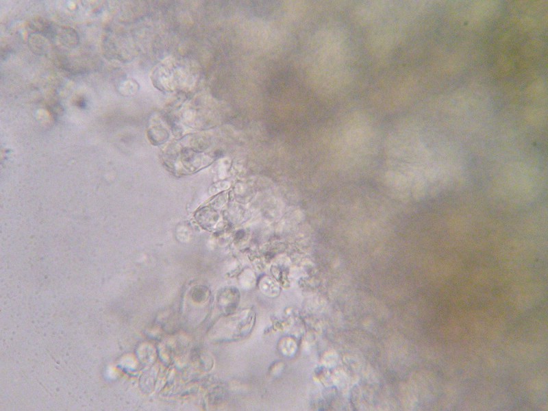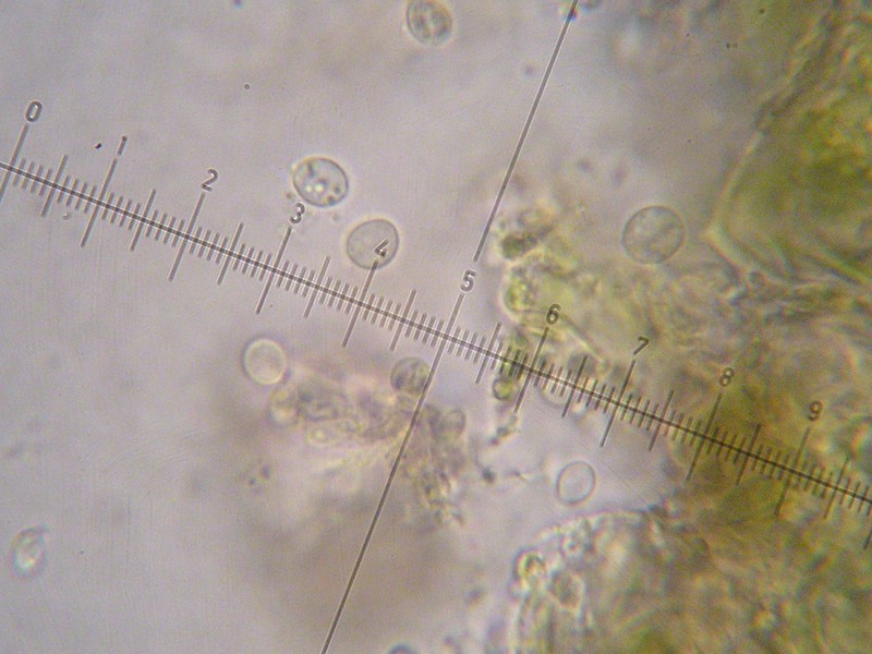 Ascosporen rundlich, hyalin und 5 – 6 µm im Durchmesser