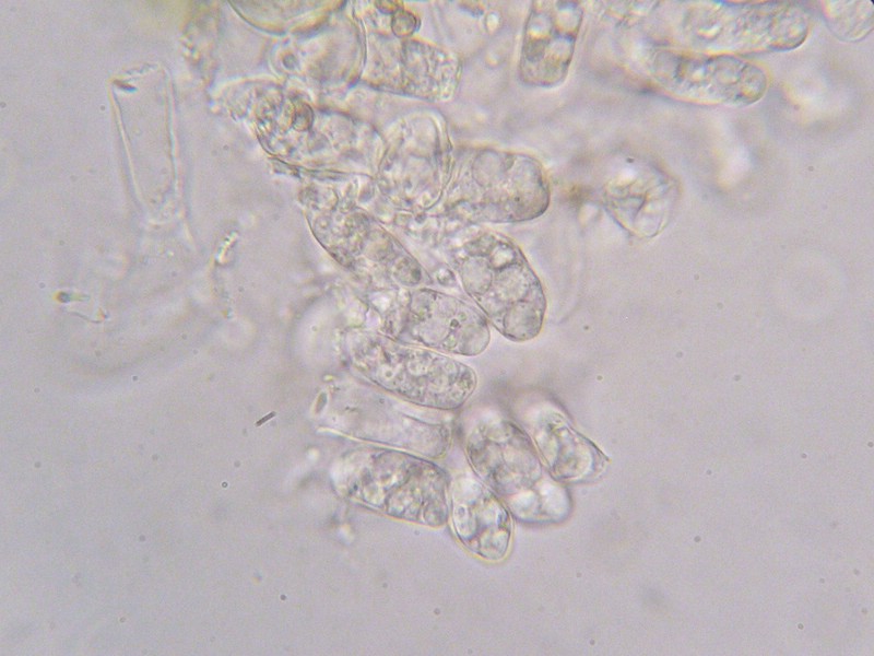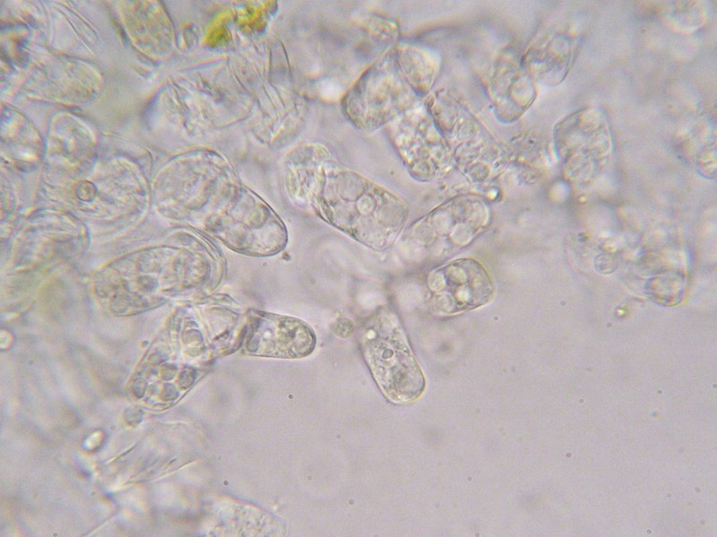 Ascosporen hyalin, rundlich und 4 – 5 µm im Durchmesser