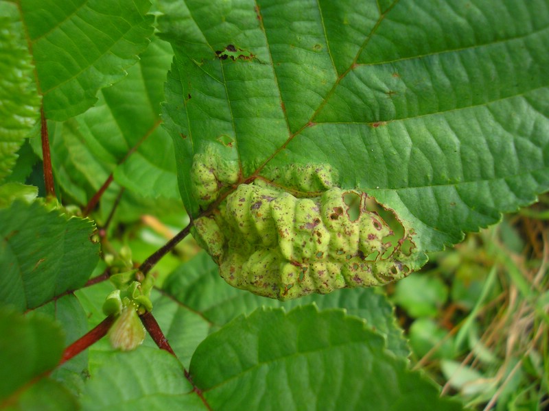 Blätter mit großen blasigen, hellgrünen Auftreibungen, diese oft etwas gekräuselt