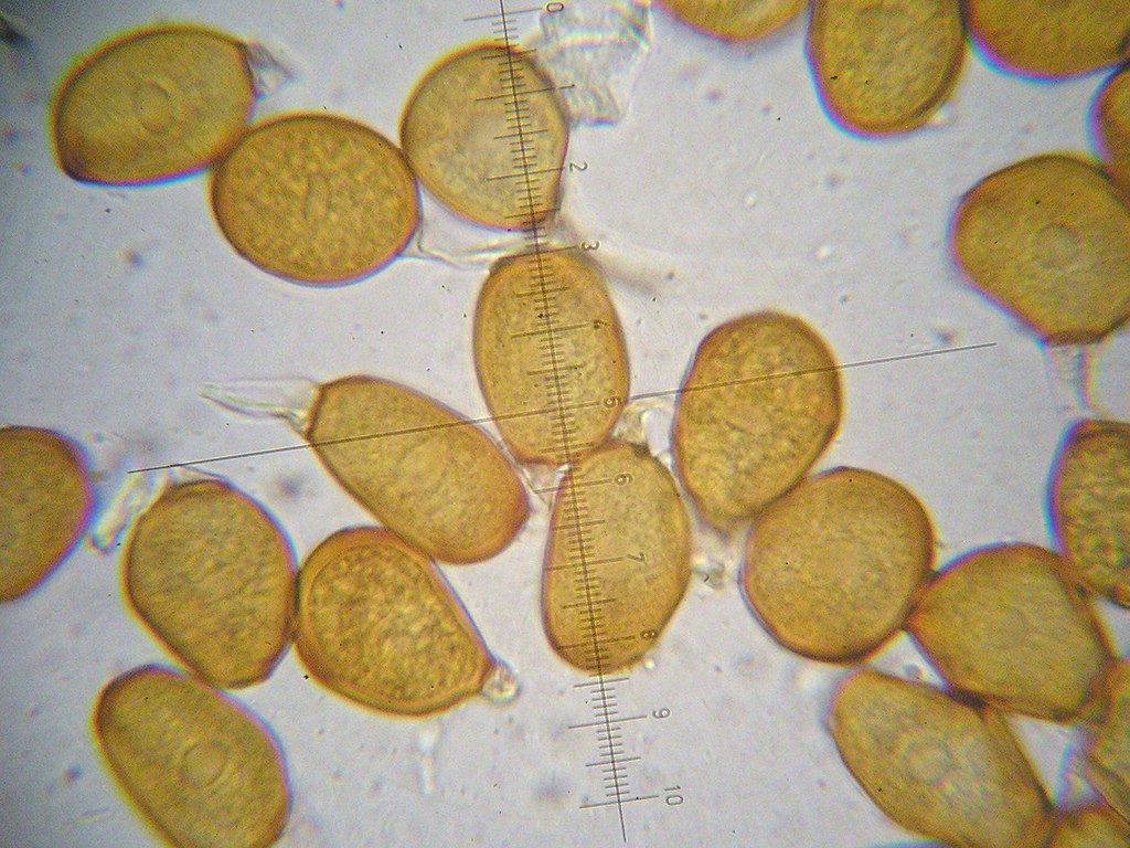 Teliosporen meist einzellig, nur wenige zweizellige; Sporen braun, mit festem Stiel; Wand am Scheitel bis 3 µm dick