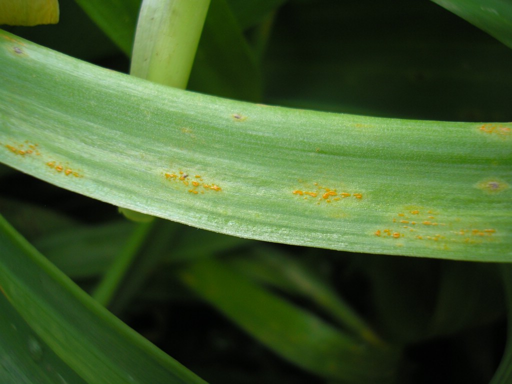 Uredien orangerot bis orange, blasig, jung von der Epidermis bedeckt; später mit einem Schlitz in der Mitte aufreißend (auf breitblättrigen Laucharten sind die Lager nicht sie auffällig blasig)