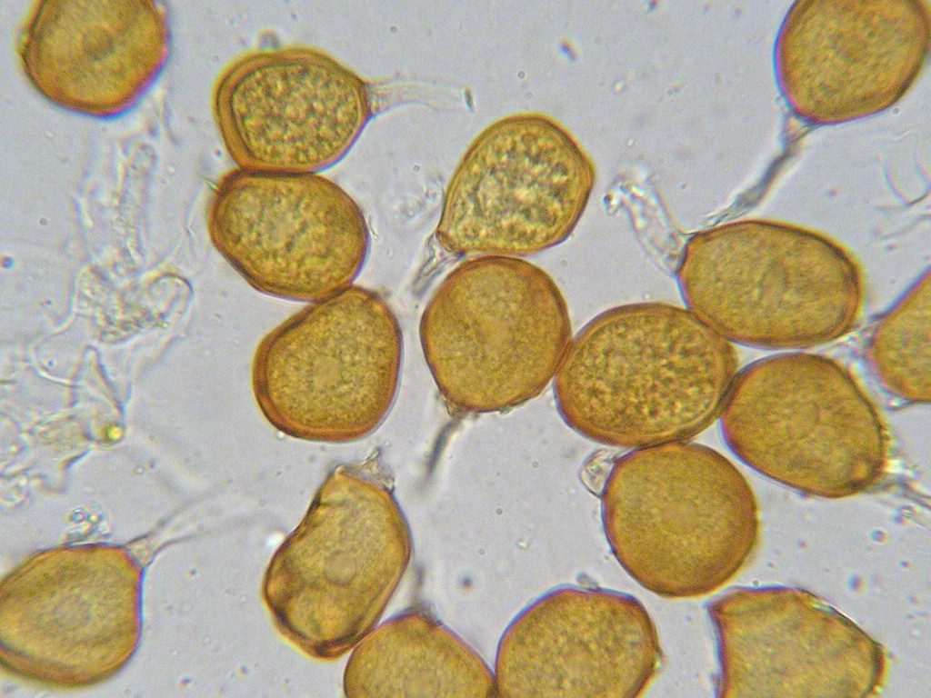 Teliosporen meist einzellig, nur wenige zweizellige; Sporen braun, mit festem Stiel; Wand am Scheitel bis 3 µm dick