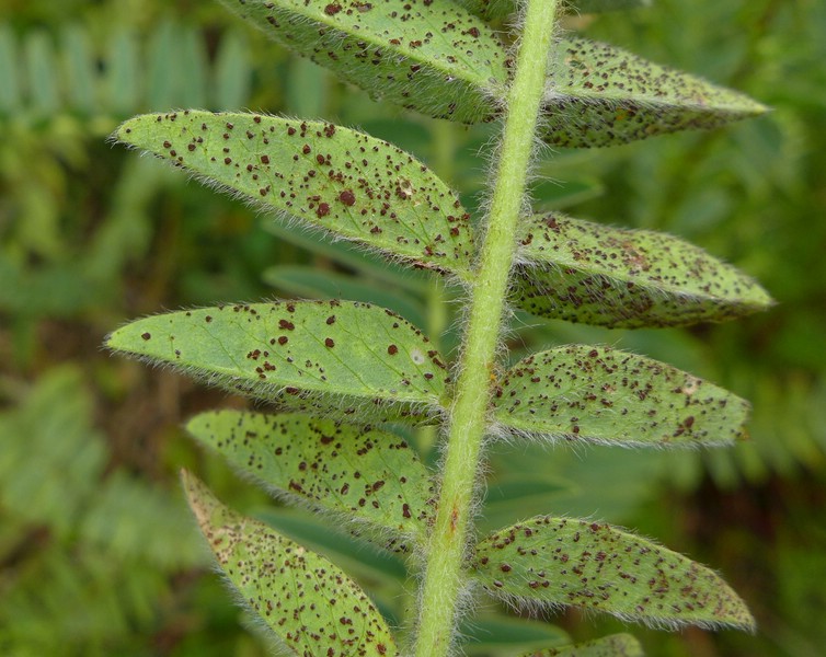 Bemerkung: Dieser Rostpilz vollführt keinen Wirtswechsel. Der Pilz bildet Uredien und Telien auf Fuchsschwanz-Tragant (Astragalus alopecurus) aus.
