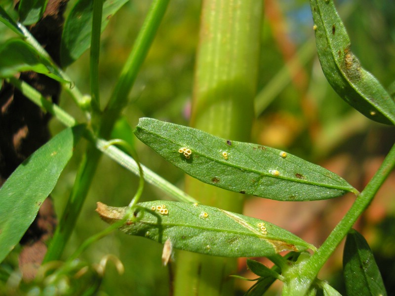 Uromyces ervi_Vicia hirsuta_JKruse (2)Diese werden als braune Krusten die mit einem Längsspalt aufreißen vor allem an den Stängeln gebildet