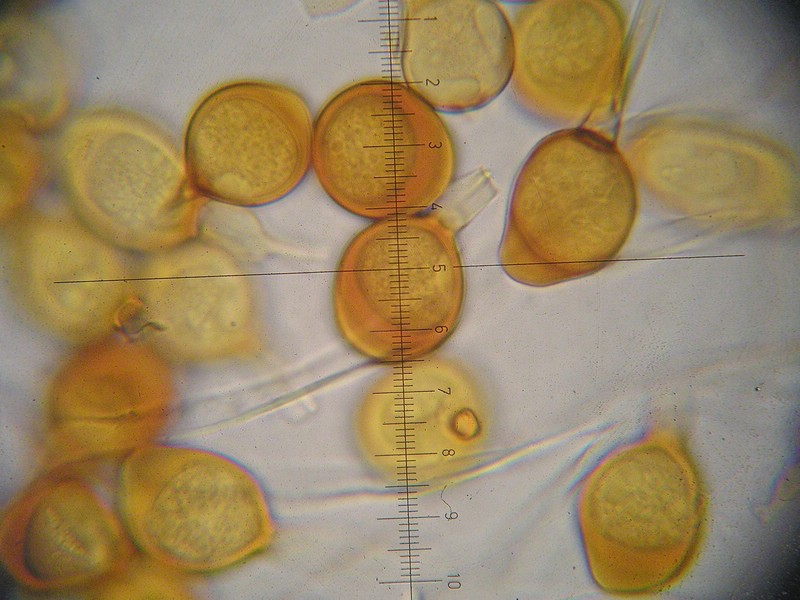 Teliosporen einzellig, fast kugelig, selten eiförmig, 17-20 x 16-19 µm