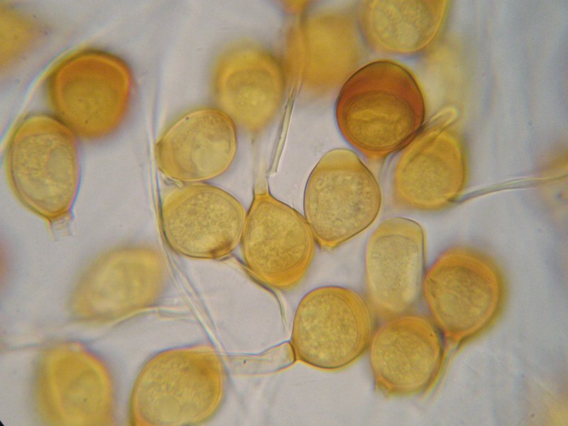 Teliosporen glatt, gelbbraun, am Scheitel auf bis zu 8 µm verdickt; lang gestielt