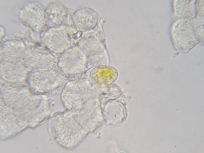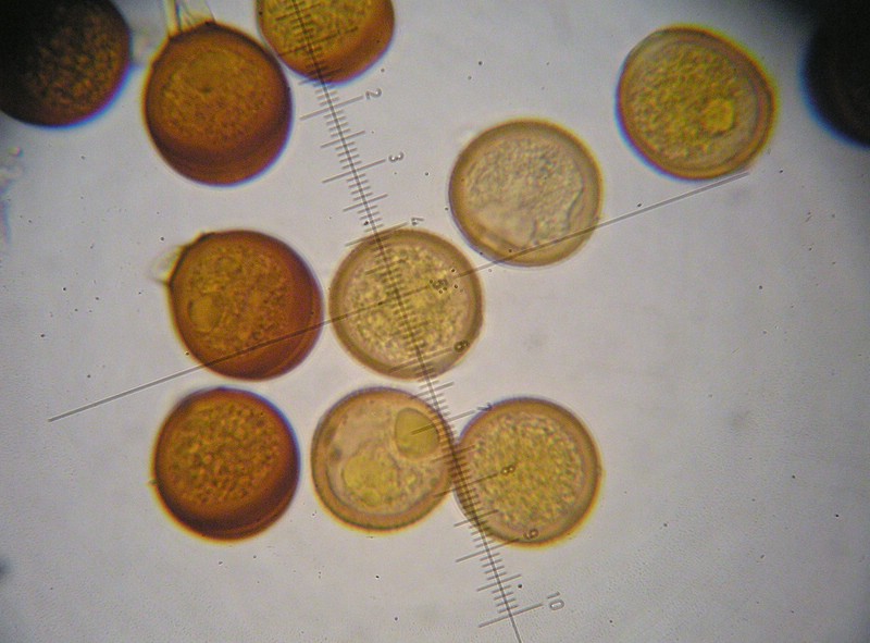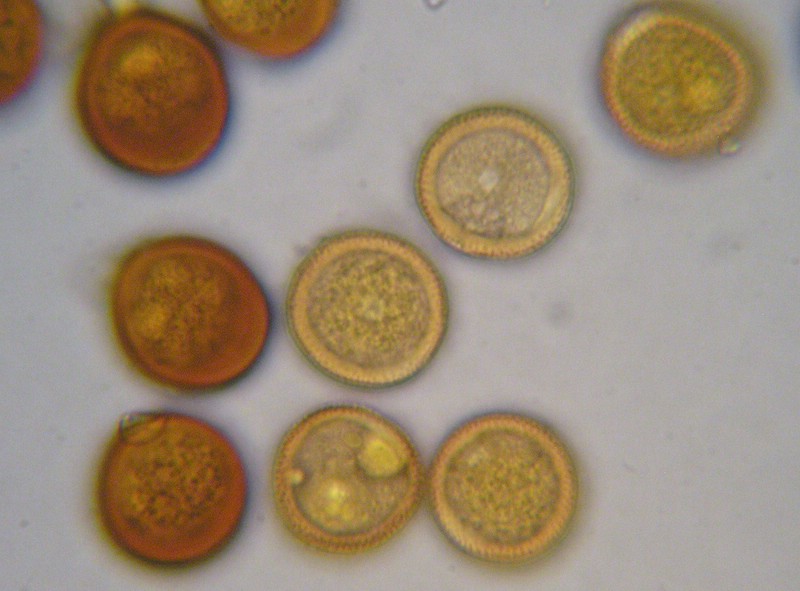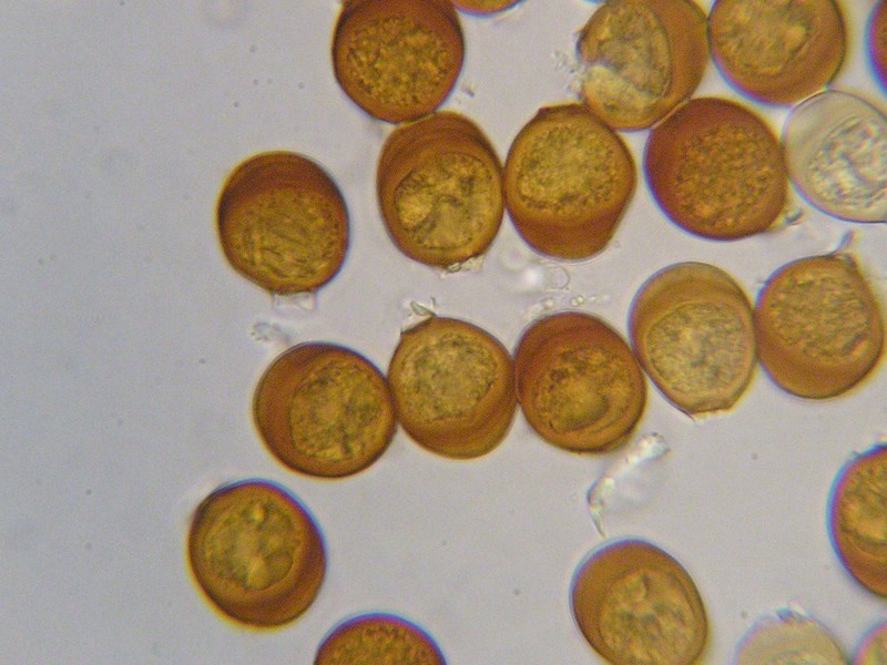 Aeciosporen oval bis rundlich, 15-20 x 16-20 µm