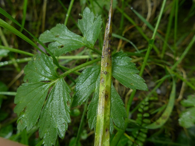Bemerkung: Dieser Rostpilz vollführt einen Wirtswechsel. Im Frühsommer werden auf Hahnenfuß die Spermogonien (0) und Aezien (I) ausgebildet und im Sommer wechselt der Pilz dann zu Rispengräsern um mit der Ausbildung von Uredien (II) und Telien (III) seine Entwicklung zu vollenden.