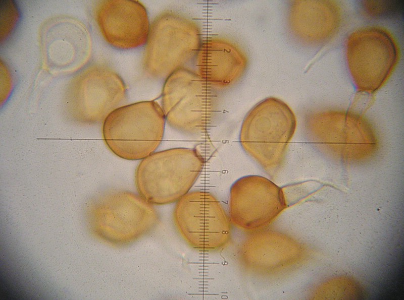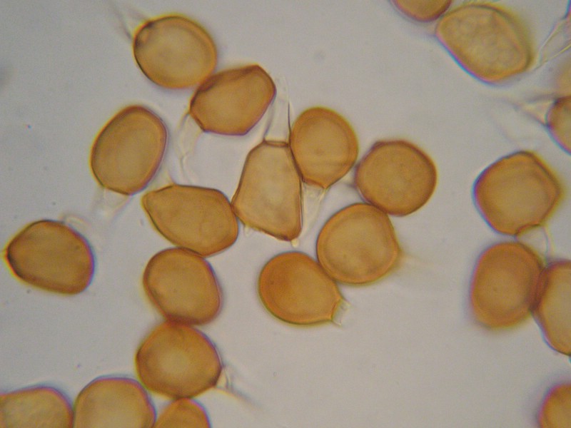 Teliosporen kugelig bis verkehrt eiförmig, 24-27 x 17-19 µm