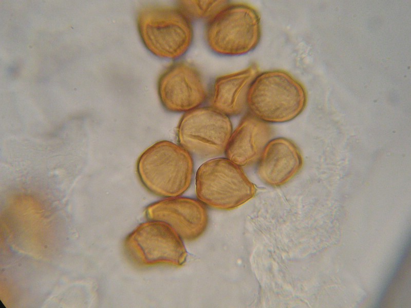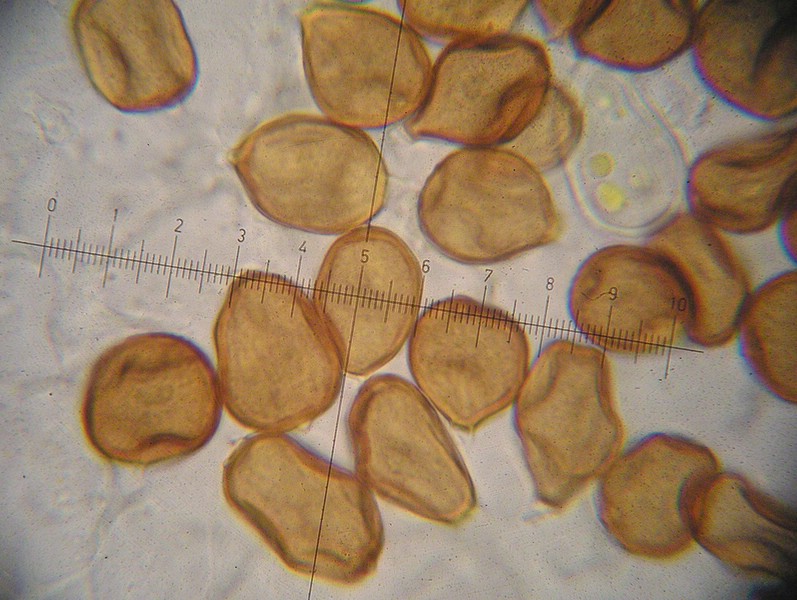 Teliosporen einzellig, oval oder birnförmig, 21-23 x 16-17 µm, am Scheitel mit einer kleinen halbkugeligen Papille